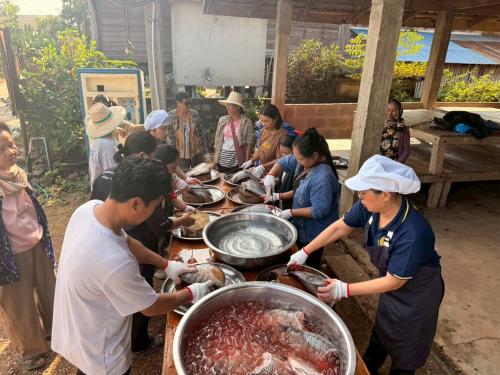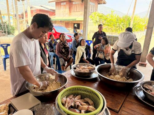 นางภัทรภร คำทา พัฒนาการอำเภอวังชิ้น ดำเนินการฝึกอบรมโครงการส่งเสริมการออมและการพัฒนาทักษะทางการเงิน (Financial Literacy) ณ บ้านสลก หมู่ 4 ตำบลแม่เกิ๋ง อำเภอวังชิ้น จังหวัดแพร่ โดยได้จัดอบรมวิธีการแปรรูปเนื้อปลานิลสดให้เป็นปลาส้ม เพื่อเป็นการฝึกอาชีพให้แก่ชุมชนและลดค่าใช้จ่ายในครัวเรือน โดยได้รับความร่วมมือจากนางลั่นทม โชติดิลก กำนันตำบลป่าสัก ให้เกียรติเป็นวิทยากรในการจัดการอบรมและสาธิตวิธีการทำปลาส้ม