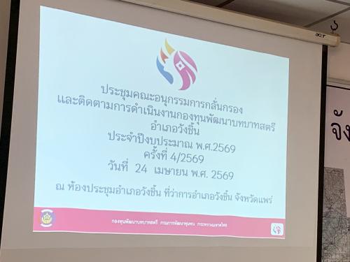 นางภัทรภร คำทา พัฒนาการอำเภอวังชิ้น ร่วมประชุมคณะอนุกรรมการกลั่นกรองและติดตามการดำเนินงานกองทุนพัฒนาบทบาทสตรี ประจำปีงบประมาณ พ.ศ.2569 ครั้งที่ 4/2569 พร้อมด้วยคณะอนุกรรมการกลั่นกรองและติดตามการดำเนินงานกองทุนพัฒนาบทบาทสตรี เกษตรอำเภอวังชิ้น และท้องถิ่นอำเภอวังชิ้น โดยมีว่าที่ร้อยตรี กิตติวัฒน์ กิตติเวช นายอำเภอวังชิ้น เป็นประธานในที่ประชุม